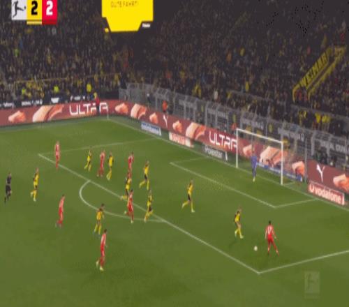 多特在第84分鐘頑強扳平。薩比策右路傳中,斯文松墊射破門,2比2。但僅僅3分鐘后,奧利塞右路下底傳中,多特防線解圍不遠,基米希凌空抽射破門,3比2。這粒絕殺球讓拜仁帶走了三分。