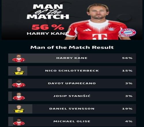 賽后,凱恩以56%的票數當選全場最佳球員。他在社交媒體上寫道:“三分到手!能夠成為這支球隊的一員讓我非常自豪,我們在國家德比中取得了一場非常重要的勝利。”