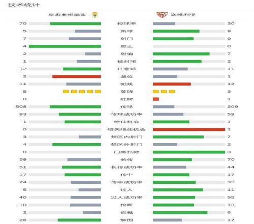 北京時(shí)間4月6日西班牙足球甲級(jí)聯(lián)賽 聯(lián)賽 第30輪,皇家奧維耶多主場(chǎng)對(duì)陣塞維利亞。皇家奧維耶多比尼亞斯破門。最終比分皇家奧維耶多 1-0 塞維利亞。