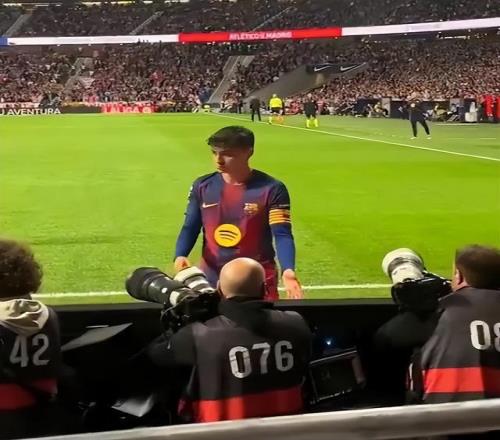 當時皮球飛出界外,23歲的巴薩中場大師佩德里急著找球,想盡快恢復比賽。他當時似乎有點發懵,既沒看到球,也沒找到球童幫忙。突然,佩德里眼前一亮,似乎瞄到了一個“散落”的足球——結果沖過去才猛然意識到,自己正朝著一位攝像師閃閃發亮的光頭飛奔而去。