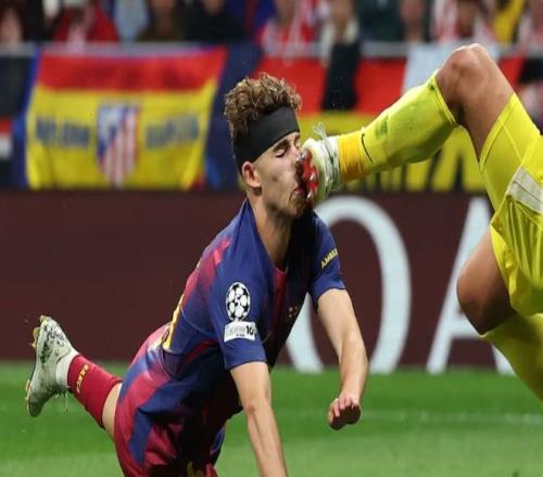 當(dāng)時亞馬爾送出傳中,費爾明反應(yīng)極快沖上去頭球攻門,但在隨后的拼搶中與出擊的穆索發(fā)生了劇烈碰撞。