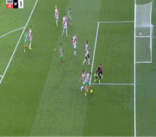 第16分鐘,巴坎布補(bǔ)射得分,皇家貝蒂斯1-0領(lǐng)先