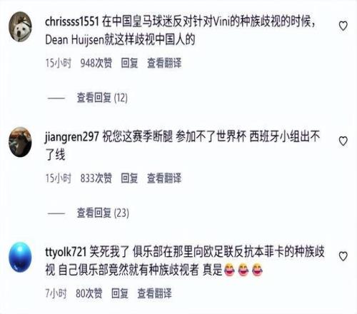 赫伊森的行為,令不少球迷氣不打一處來。而皇馬俱樂部又一次沉默,被球迷怒噴太雙標。