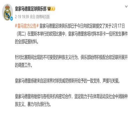 很快在2月19日,皇馬正式發布官方公告,表示俱樂部已向歐足聯提交了全部證據材料。