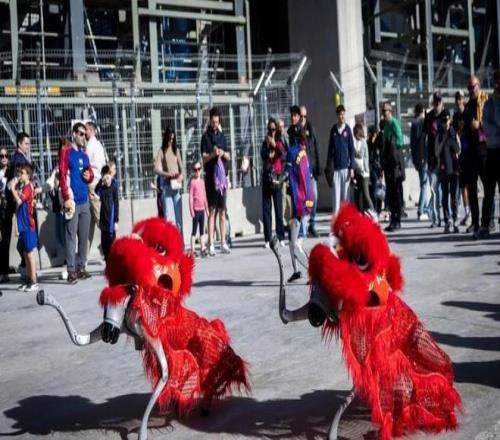 由加泰羅尼亞華人社區組建的"Penya Blaugrana Dracs Units"球迷會在賽前帶領現場觀眾烘托氣氛。CAT團隊也參與其中,帶來精彩表演,拉近了看臺上觀眾之間的距離。