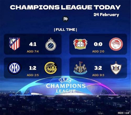 歐冠淘汰賽附加賽的4場比賽已經全部結束,馬競、博德閃耀、紐卡、勒沃庫森成功晉級。國米、卡拉巴赫、布魯日和奧林匹亞科斯出局,明晨皇馬、尤文、巴黎、多特等隊將出戰,決出最后四個16強名額。