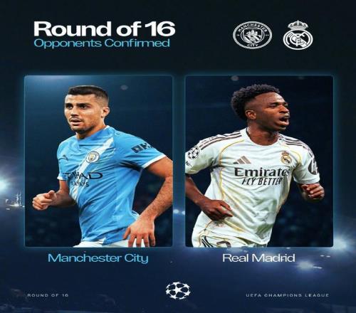 當抽簽完成后,本賽季歐冠1/8決賽對陣敲定:巴黎圣日耳曼VS切爾西、加拉塔薩雷VS利物浦、皇家馬德里VS曼城、亞特蘭大VS拜仁慕尼黑、紐卡斯爾聯VS巴塞羅那、馬德里競技VS托特納姆熱刺、博德閃耀VS葡萄牙體育、勒沃庫森VS阿森納。