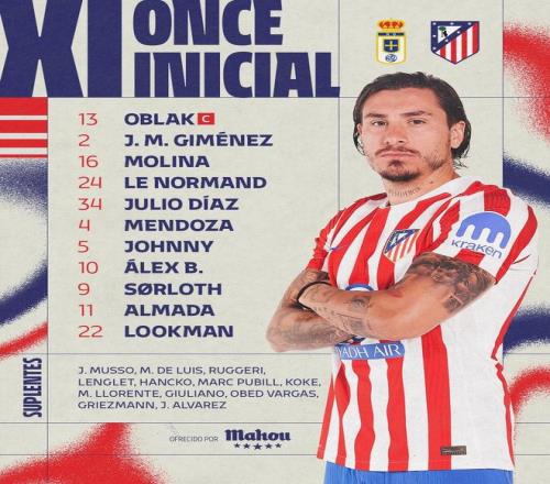 馬競首發:13-奧布拉克、16-莫利納、2-希門尼斯、24-勒諾爾芒、34-迪亞斯、4-門多薩、5-卡多佐、10-巴埃納、11-阿爾馬達、22-盧克曼、9-瑟洛特