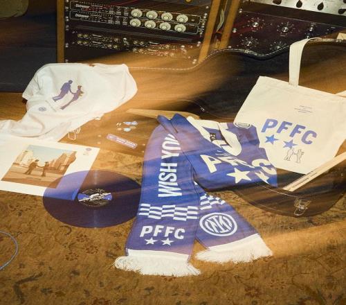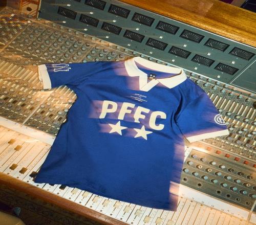 該系列的靈感源自攝影師金-戈特利布-沃克拍攝的經(jīng)典PFFC合影,其中一大亮點是一款專屬復(fù)古球衣,以現(xiàn)代視角重塑70年代復(fù)古美學(xué),融合平克-弗洛伊德與國際米蘭兩大品牌標識。球衣正面沿用經(jīng)典PFFC字母標識,還原歷史照片中原款球衣樣式;背部則印有專為俱樂部定制的《愿你在此》專輯50周年紀念徽章。衣袖點綴國米隊徽,以及專輯封面?zhèn)魇澜?jīng)典的握手圖案——平克-弗洛伊德最具代表性視覺符號。圍巾、托特包、吉他撥片、鼓槌等周邊單品,也均沿用同款設(shè)計元素。