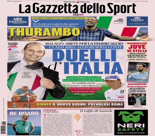 足協主席選舉的連鎖反應直接波及國家隊帥位?!睹滋m體育報》用「Azzurri CT: Allegri battles Conte」定義這場博弈——兩位前尤文、前國米冠軍教頭,風格迥異,人脈交錯。