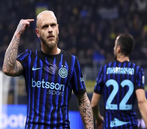第32分鐘,國米打出精彩配合,姆希塔良觀察后將球吊入禁區,迪馬爾科后排插上不停球小角度外腳背捅射遠角破門,1:0!迪馬爾科連續6場比賽參與進球,期間他為國米貢獻2粒進球和8次助攻,是21年來第一位完成此成就的后衛球員;賽季至今他也已經收獲了7球15助攻。