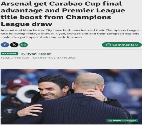 假如阿森納能在歐冠淘汰勒沃庫森,那么他們將在四分之一決賽中面對博德閃耀和葡萄牙體育的勝者;與此同時,曼城的歐冠對手是皇馬,假如他們晉級,將面對拜仁和亞特蘭大的勝者。