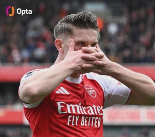 Opta統計,哲凱賴什本賽季各項賽事已經代表阿森納打進18球,在英超時代里(92-93賽季以來),只有99-00賽季的亨利(26球)和14-15賽季的桑切斯(25球)在首秀賽季比哲凱賴什代表槍手進球更多。