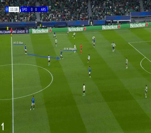 下圖顯示賴斯和厄德高之間的一次來(lái)回傳球,在戰(zhàn)勝葡萄牙體育后受到了很多關(guān)注,但這種不愿轉(zhuǎn)身面向?qū)Ψ降膽B(tài)度并不僅僅來(lái)自阿森納的隊(duì)長(zhǎng)。