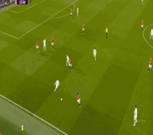 所以在這次由左路嘗試的進攻當(dāng)中,曼聯(lián)中路的壓力很大,雖然約羅打出兩次攔截,但烏加特并沒有在第一次攔截后聯(lián)系上庫尼亞,這使得利茲聯(lián)得以持續(xù)輸出: