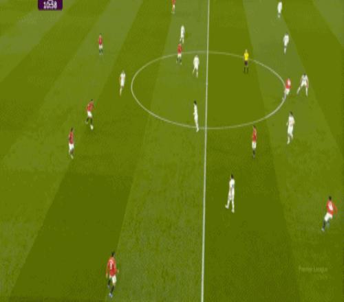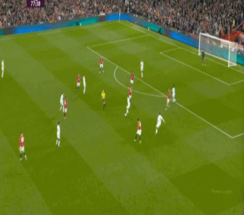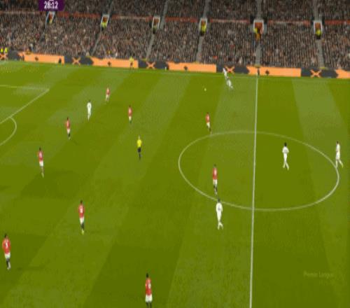 點燃了主場的氣氛之后,曼聯(lián)的表現(xiàn)有了一些提振,從而打出了一段連續(xù)的轉(zhuǎn)換進攻: