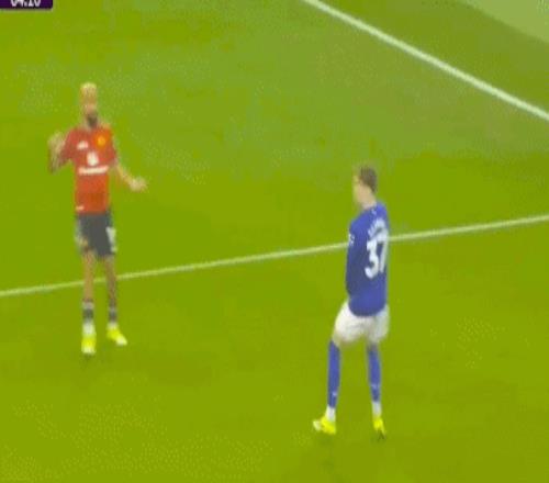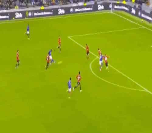 第30分鐘,迪亞洛右路突破被布蘭斯韋特拉拽,為曼聯(lián)拼得一個(gè)定位球機(jī)會(huì)。B費(fèi)45°傳中被解圍,達(dá)洛特禁區(qū)外停球順勢(shì)凌空抽射,直奔球門右上角,最終擦著立柱稍稍偏出。