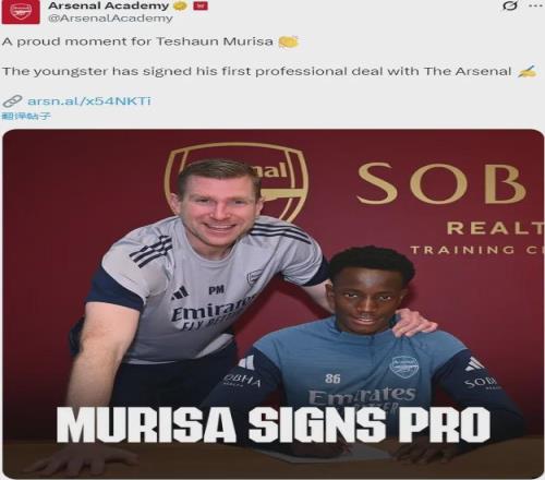 官方:阿森納宣布和特尚-穆里薩簽下了他的首份職業合同。