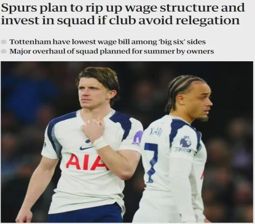 衛報記者MH消息,熱刺老板準備打破俱樂部僵化的薪資結構,假如本賽季能避免降級,那么他們將在夏天來臨之前付諸行動。