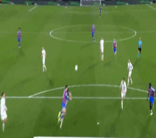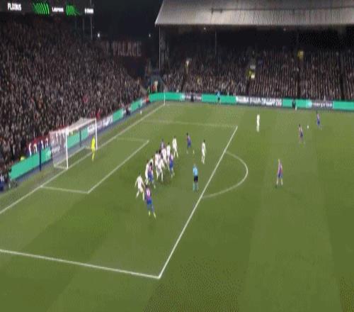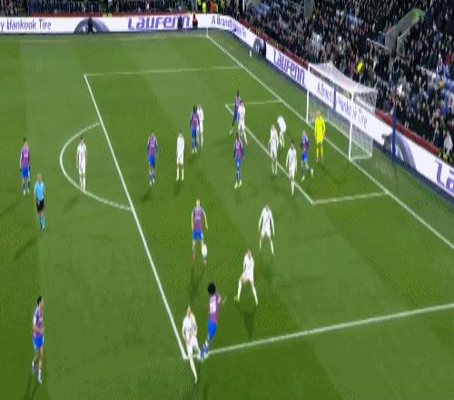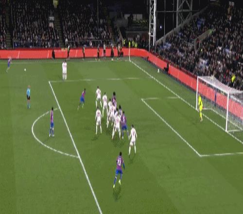 第36分鐘,拉克魯瓦禁區躍起頭球破門,水晶宮1-0領先