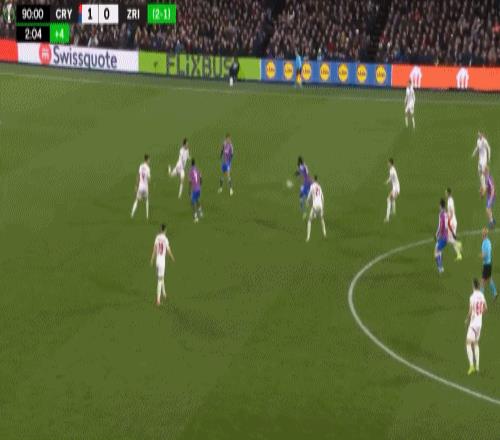 第90+2分鐘,蓋桑禁區抽射破門,水晶宮2-0鎖定勝局