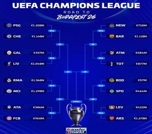 相比之下,巴黎、切爾西、利物浦、皇馬、曼城、拜仁齊聚上半區,慘烈程度可見一斑。可以說很多比賽堪稱是“提前上演的決賽”。而下半區的巴薩和阿森納則顯得從容太多,他們不僅沒遇到太強的對手,也有博德、葡體這樣實力一般的對手“相伴”,確實輕松很多。