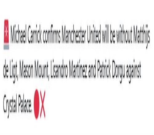 卡里克希望芒特在賽季末有所貢獻,幫助球隊保四爭三。27歲的芒特已經受傷缺席了4場比賽,對水晶宮之戰參賽為時過早,但下周重返球隊大名單希望頗大。值得一提的是,11月客場戰勝水晶宮時,打入制勝球的就是芒特。可惜,卡里克上任后,芒特只在2-0擊敗曼城之戰的最后1分鐘出場,補時打入一球,卻被判罰越位無效,之后就進入了傷病名單。