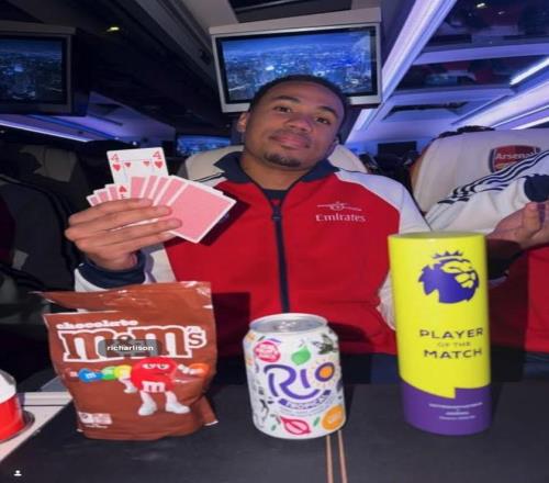 賽后加布里埃爾做了什么?是A:低調(diào)行事,暗自慶幸?還是B:在社交媒體發(fā)布自己手持撲克牌的照片,亮出紅桃4,寓意球隊(duì)4球大勝,甚至?