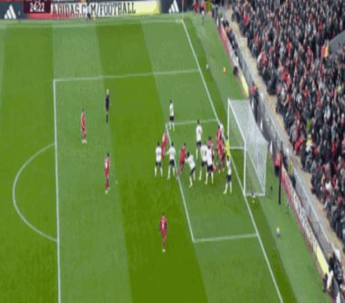 第43分鐘利物浦獲得右側(cè)角球機(jī)會(huì),埃基蒂克后點(diǎn)擺渡給了買卡利斯卡,后者直接凌空抽射建功,將比分改寫(xiě)為了3-0,利物浦也成為了曼聯(lián)之后,第二支英超單場(chǎng)比賽上半場(chǎng)利用角球打進(jìn)3球的球隊(duì)。