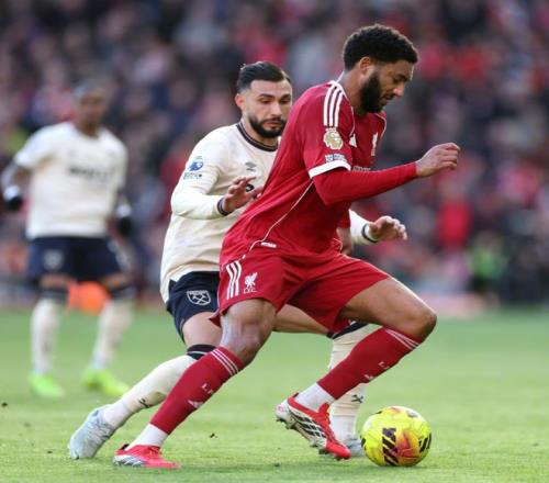 面對(duì)最近4次正面交鋒,全部敗在自己腳下的西漢姆聯(lián)隊(duì),利物浦在主場(chǎng)沒(méi)有絲毫保留,在4231的陣型中,讓阿利松鎮(zhèn)守龍門,凱爾凱茲、范戴克、科納特和喬戈麥斯構(gòu)筑后防,麥卡利斯特和赫拉芬貝赫搭檔雙后腰,加克波、索博斯洛伊和薩拉赫坐鎮(zhèn)中場(chǎng),單箭頭則是埃基蒂克。