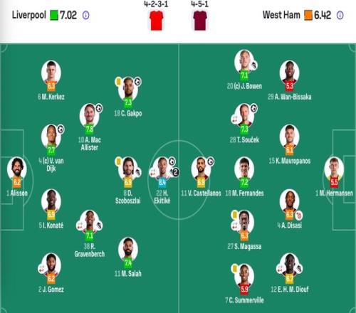 利物浦首發(fā):1-阿利松、2-戈麥斯(76'30-弗林蓬)、4-范戴克、5-科納特、6-凱爾凱茲、8-索博斯洛伊、10-麥卡利斯特、38-赫拉芬貝赫(85'42-尼奧尼)、11-薩拉赫、18-加克波、22-埃基蒂克(76'73-恩古莫哈)