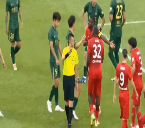 比賽的第30分鐘,米特里策推倒李鎮(zhèn)全,隨后被阿馬杜鏟倒,引發(fā)了雙方球員的沖突。在雙方?jīng)_突結(jié)束之后,主裁判判罰給浙江隊任意球,米特里策主罰的任意球勢大力沉,直接將人墻里的阮奇龍擊倒在地。