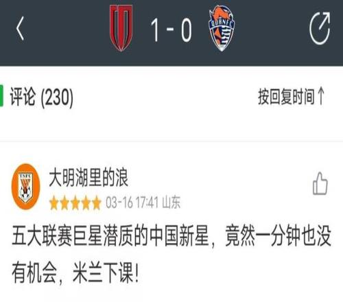 對于小鄺遲遲無法獲得更多出場機(jī)會,有粉絲表達(dá)了不滿,寫道(上圖):“(歐洲)五大聯(lián)賽巨星潛質(zhì)的中國新星,竟然一分鐘也沒有機(jī)會(出場),(主教練)米蘭下課。”