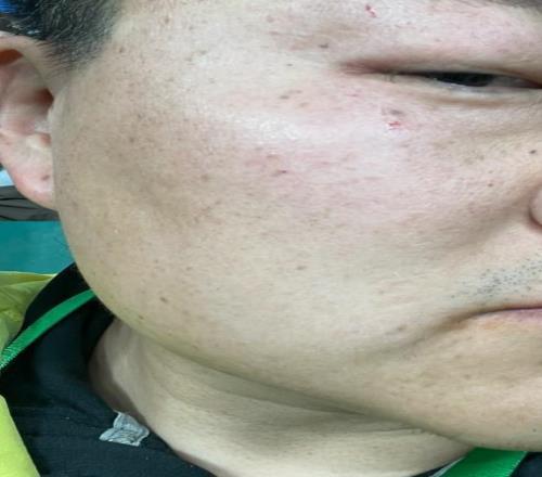 賽后,這名北京國安球迷曬照并配文:還看禁區那邊是不是點球呢,結果導向,飛過來一個球,一下給砸蒙了,眼鏡碎了,冰敷完繼續給國安加油!國安今年太難了希望能盡快步入正軌吧。