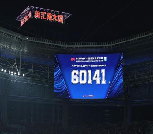 4 月 11 日,2026 賽季中超第五輪焦點戰役,上海申花隊主場以 1 比 0 擊敗上海海港隊,這是兩隊第 27 次在中超聯賽聯袂演繹上海灘德比。官方數據顯示:此役現場觀眾人數高達 60141 人,創造上海德比、上海體育場以及上海職業足球的上座率最高紀錄;與此同時,這場上海德比票房超 1000 萬元幾無懸念,有望創造上海體育場單場中超票房之最。