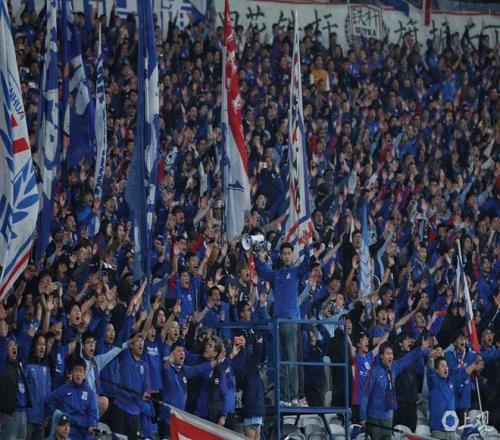 這場上海德比,能容納72000人的上海體育場基本坐滿。