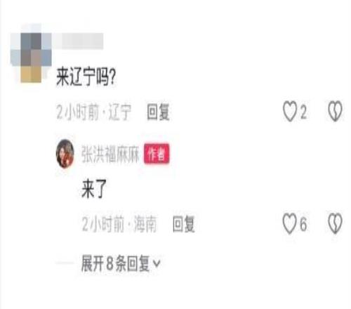 有球迷在張洪福母親的抖音評論區留言:來遼寧嗎?隨后張洪福母親回復:來了。