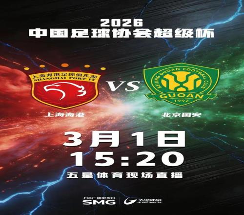 北京時(shí)間3月1日,2026賽季中國足壇的第一場(chǎng)正式比賽超級(jí)杯,就將在上海海港和北京國安之間展開。五星體育將從15:20起帶來本場(chǎng)比賽的直播,敬請(qǐng)關(guān)注!