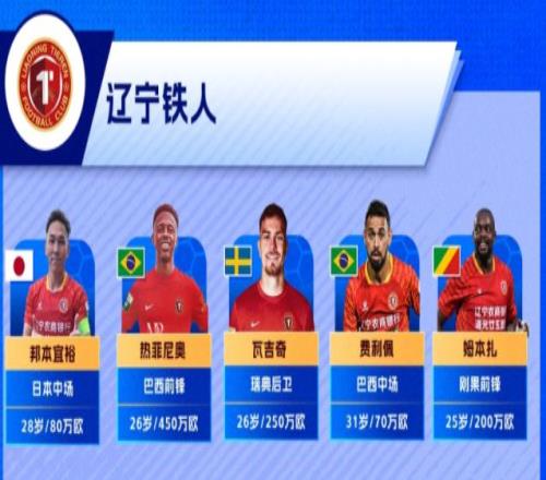 在外援引進上,遼寧鐵人則下了大手筆,接連簽下相對現階段中超賽場而言身價不菲的外援。包括身價450萬歐的巴西籍前鋒熱菲尼奧、身價250萬歐的瑞典籍中衛瓦吉奇