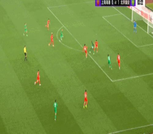 上半場(chǎng)第29分鐘,海港右路傳中制造國(guó)安禁區(qū)內(nèi)混亂,皮球幾次反彈后打中國(guó)安門柱。